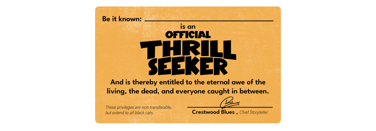We’re still putting the finishing touches on it now, but this is a huge step toward building a proper Thrill Comics community hub. All recent Kickstarter backers will receive their membership cards with their books! If you didn’t back the Double Feature Kickstarter, you’ll still be able to join through the website, or in person at a convention, and get your Official Thrill Seeker membership card.