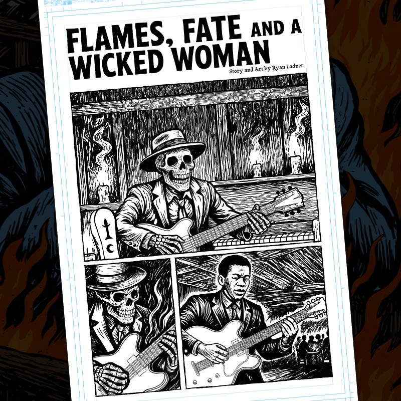 This month, we’re revealing an in-progress page from Blues: Lore and Legends #1 so you can get a glimpse of the haunting TALES coming your way. We’re also sharing some layout pages from Memphis vs. Zombies featuring many of the incredible cameo appearances submitted by our amazing backers from the first campaign. Keep an eye on our socials and updates!